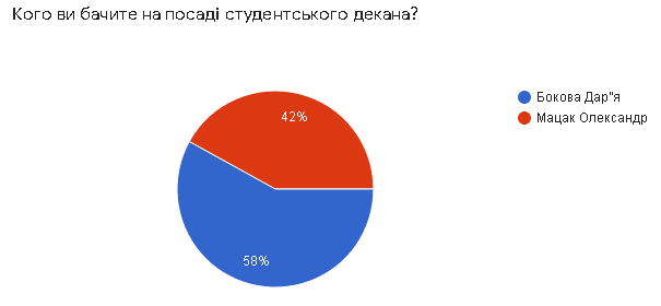 За результатами автоматичного підрахунку голосів студентським деканом факультету технологічної і професійної освіти обрано Бокову Дар’ю (58 % голосів).