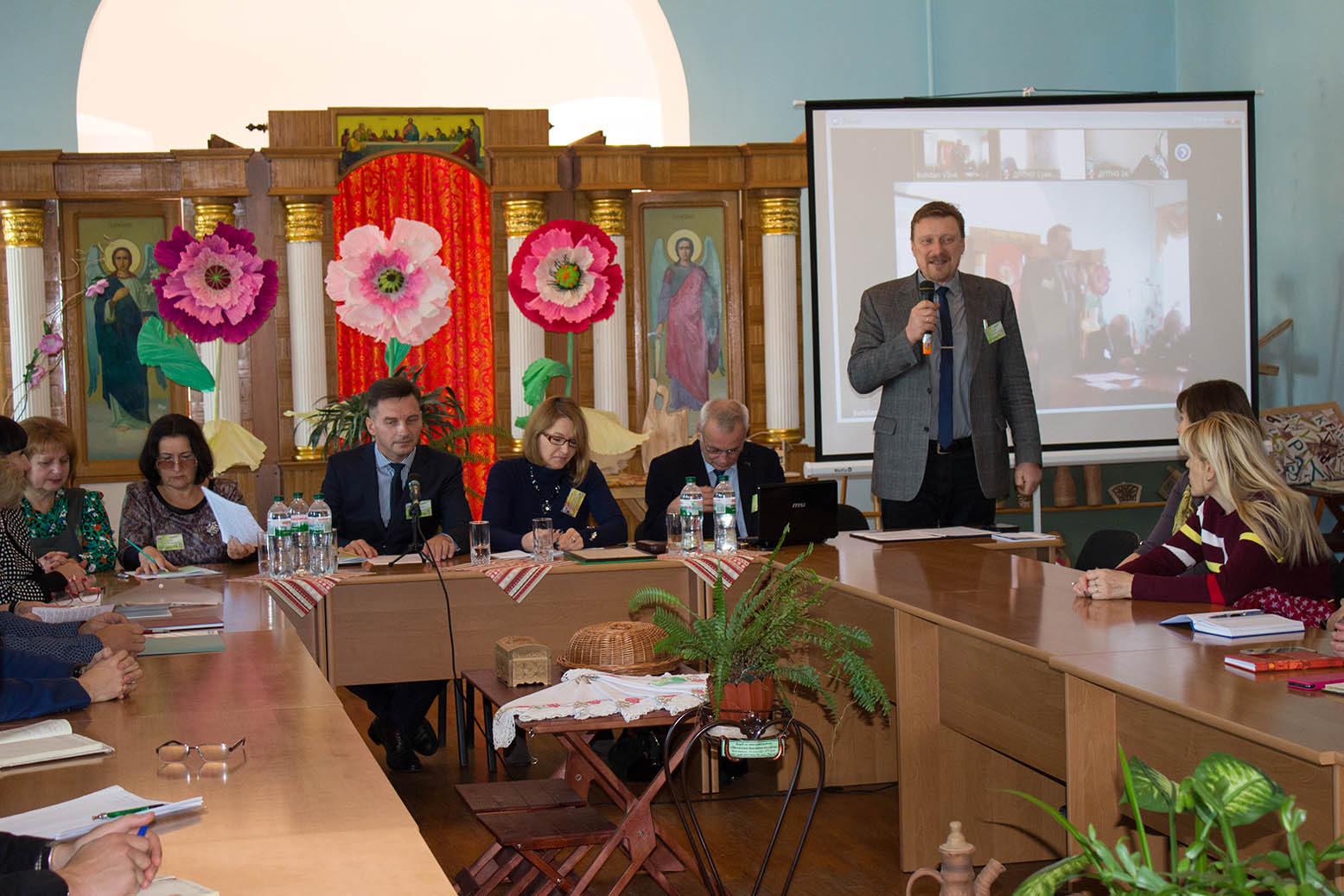 Ковальчук Василь Іванович, доктор педагогічних наук, професор, завідувач кафедри професійної освіти та технологій сільськогосподарського виробництва у своїй доповіді розповів про особливості створення сприятливого освітнього середовища в закладі.