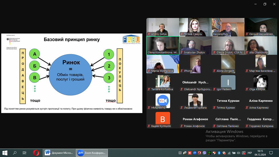 4 грудня 2024 року викладачі, здобувачі освіти та аспіранти кафедри професійної освіти та технологій сільськогосподарського виробництва взяли участь у вебінарі «Принципи функціонування та особливості діяльності аграрних ринків. Досвід ЄС».