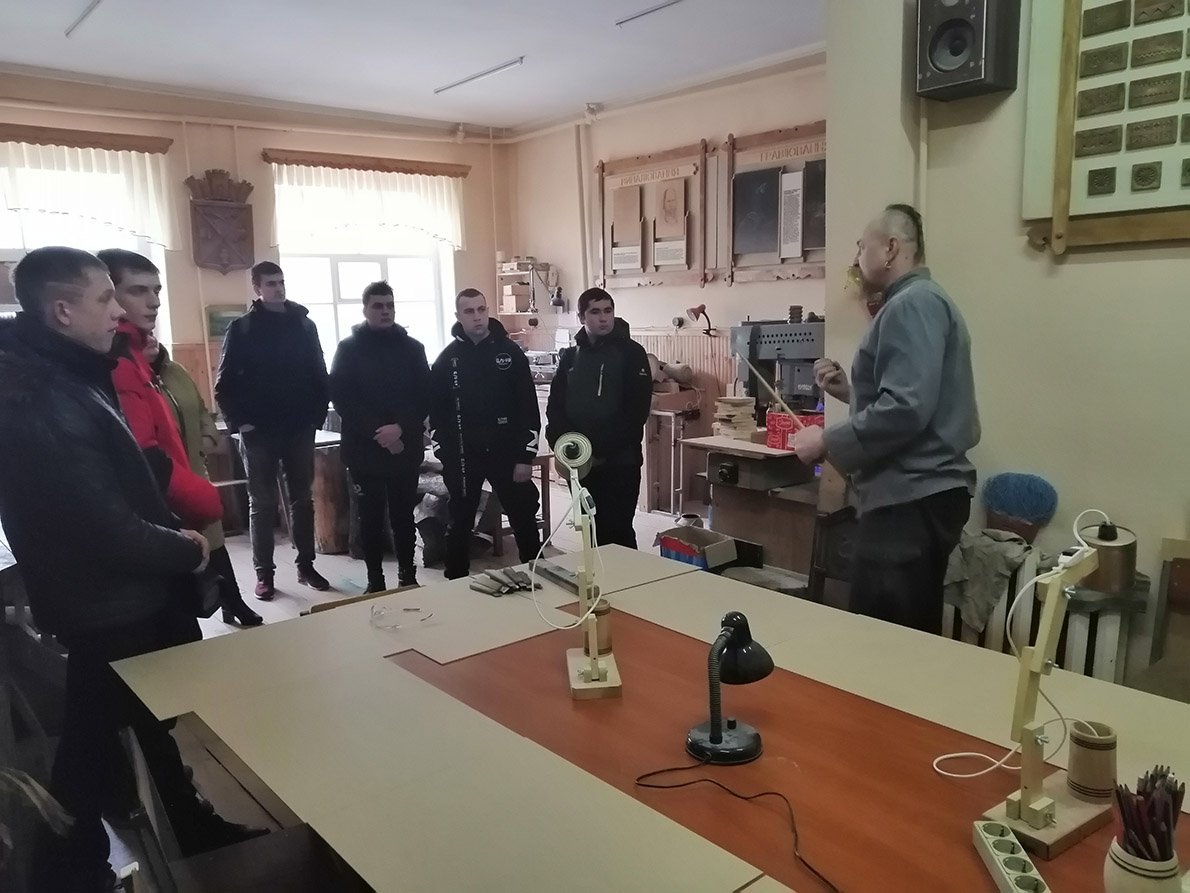 На День відкритих дверей кафедри технологічної і професійної освіти, 17 лютого, завітали студенти професійно-педагогічного коледжу Глухівського національного педагогічного університету імені Олександра Довженка, для яких було проведено екскурсію по факультету технологічної і професійної освіти, а також організовані майстер-класи «Технологія оздоблення великоднього яйця у техніці кінусайга» (доц. Хоруженко Т.А., студ. Самоброд. Я.) та «Оздоблення виробів сіверським різьбленням» (доц. Білевич І.В., студ. Лащухін П.).