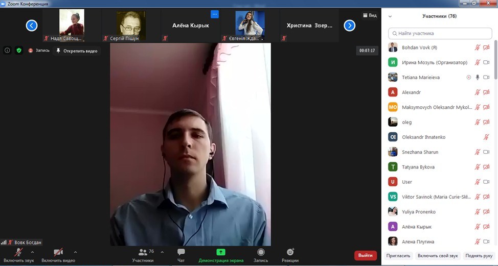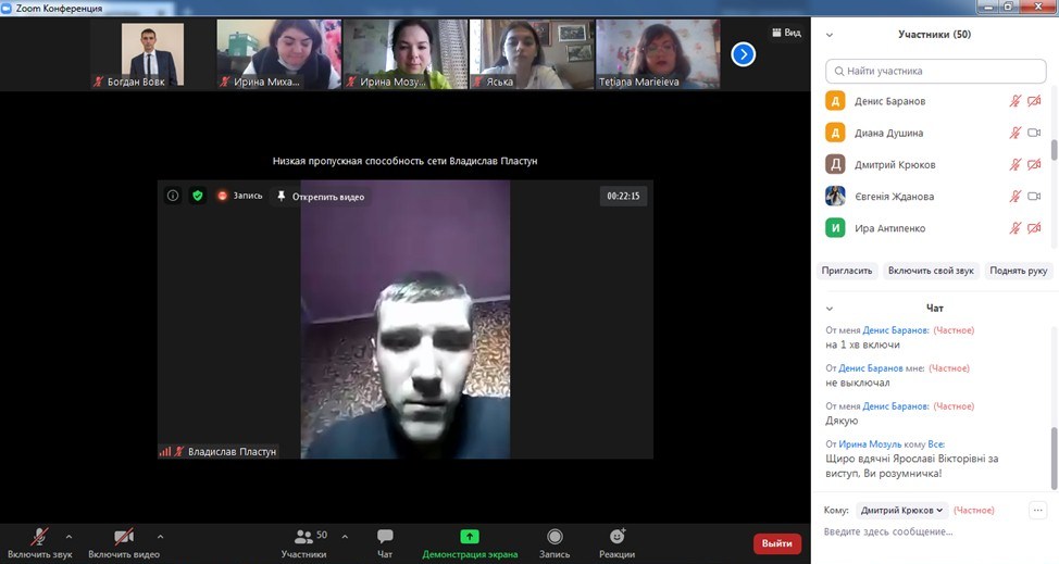 Хочеться виокремити виступи студентів Т. Москаленко (62 М-Т група), науковий керівник: доктор педагогічних наук, професор, член-кореспондент НАПН України, завідувач кафедри технологічної і професійної освіти Курок В. П., Павлюка В. (62 М-Т група), науковий керівник: кандидат педагогічних наук, доцент кафедри технологічної і професійної освіти Білевич С. В., і Олексенко Т. (45-Пр(К) група), науковий керівник: кандидат педагогічних наук, старший викладач кафедри професійної освіти та технологій сільськогосподарського виробництва Вовк Б.І., які показали не лише ґрунтовний підхід до своєї наукової роботи, а й гарно представили доповіді та зуміли цікаво відповісти на поставлені їм запитання.