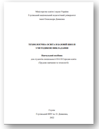 ТЕХНОЛОГІЧНА ОСВІТА В БАЗОВІЙ ШКОЛІ Навчальний посібник (Підп. до друку 26.10.2022) |