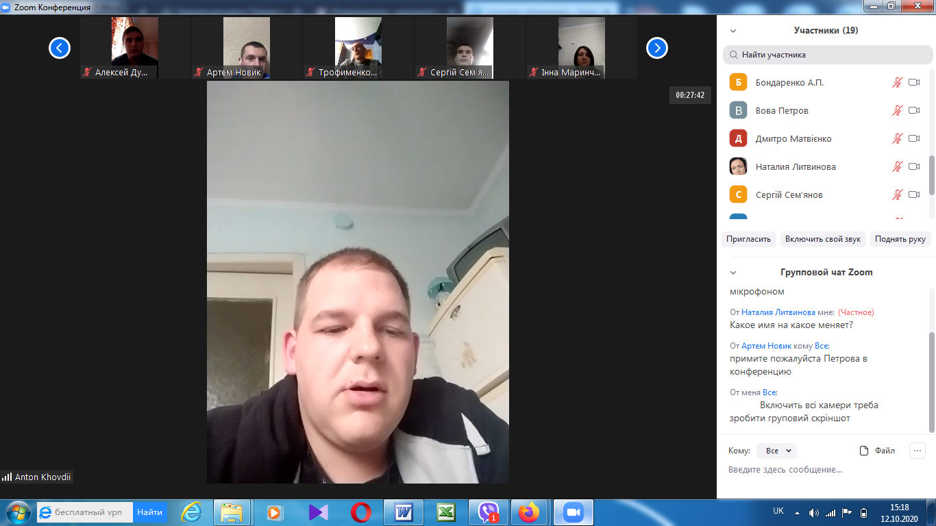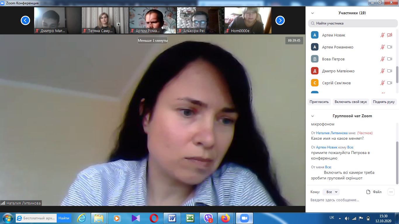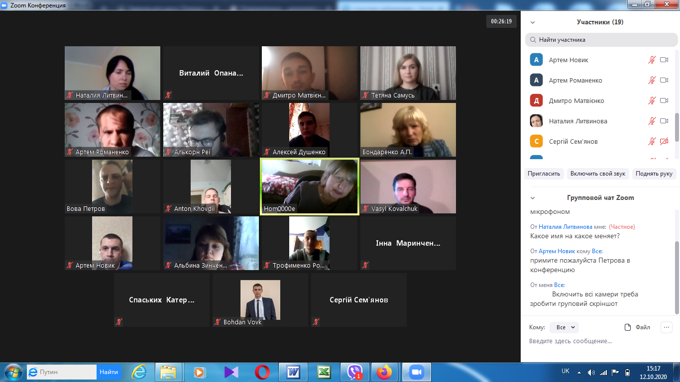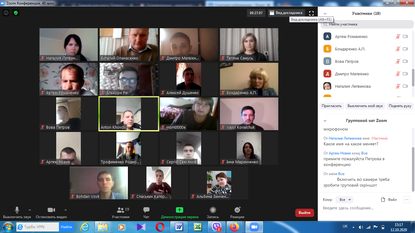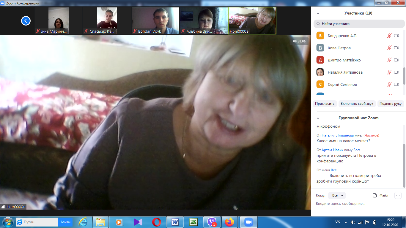 На факультеті технологічної і професійної освіти 12 та 15 жовтня відбулись відеоконференції (за допомогою сервіса Zoom) присвячені проміжному контролю виконання магістрантами другого курсу завдань педагогічної практики (Педагогічна практика у ЗВО на робочому місці викладача).