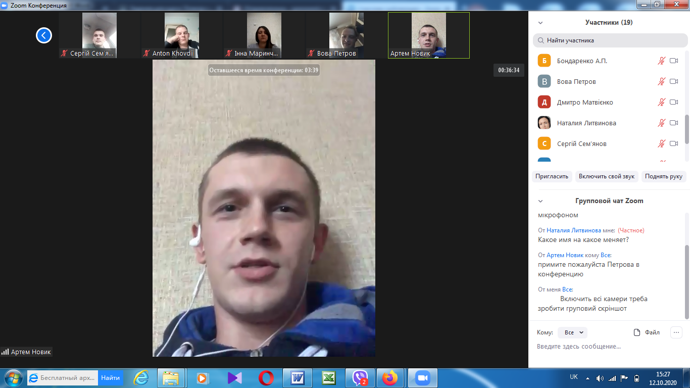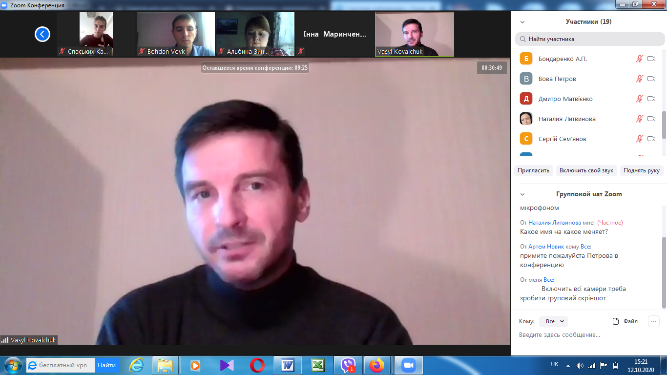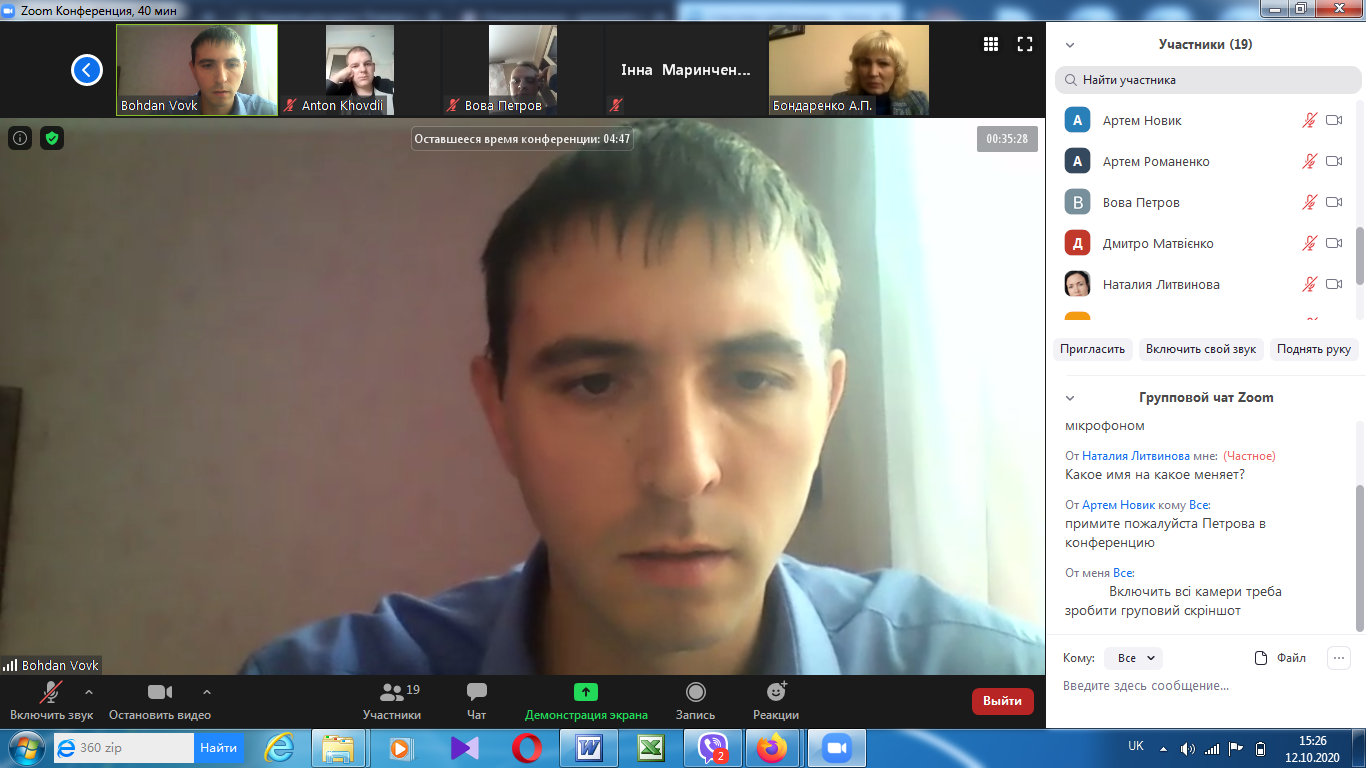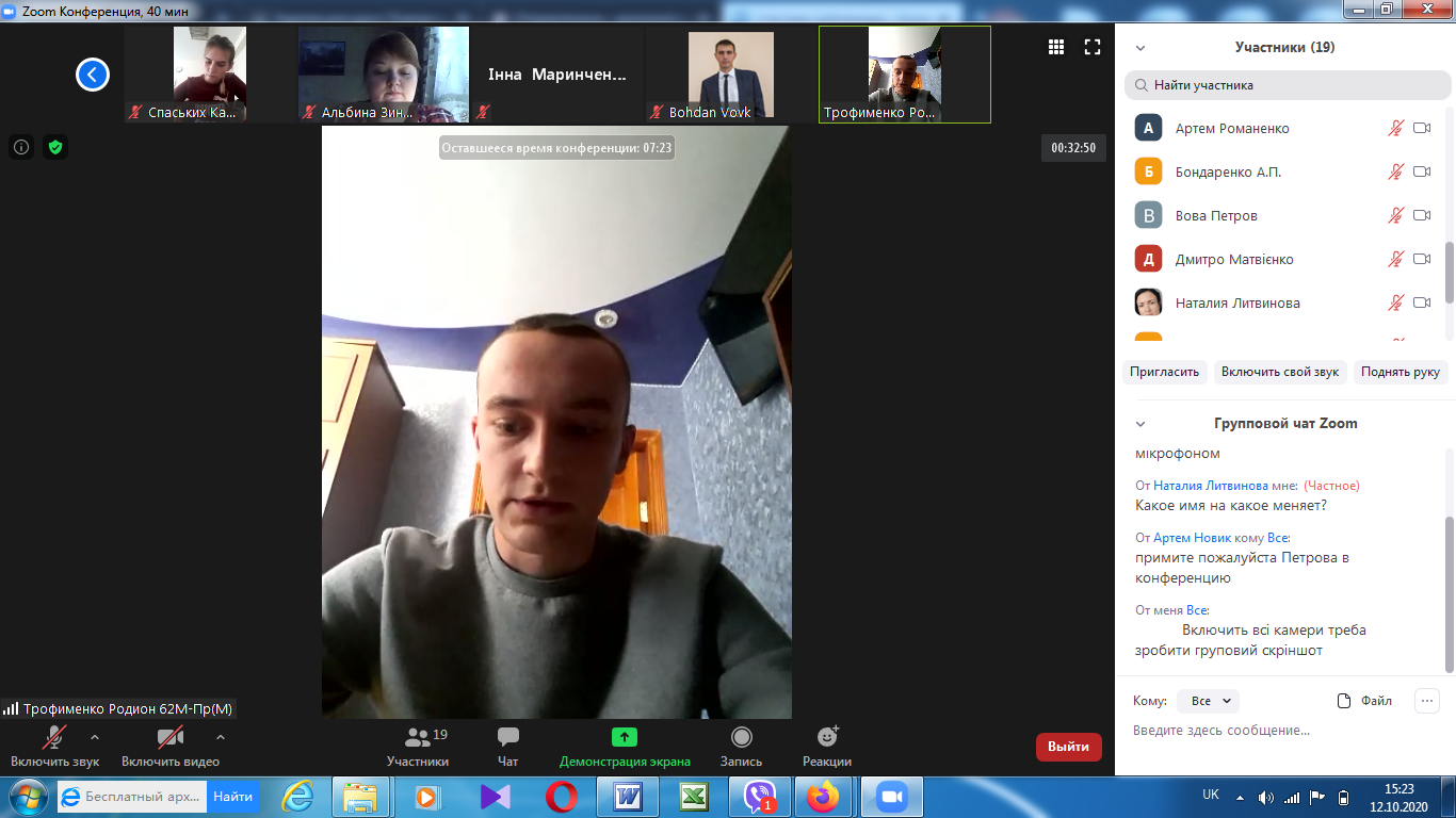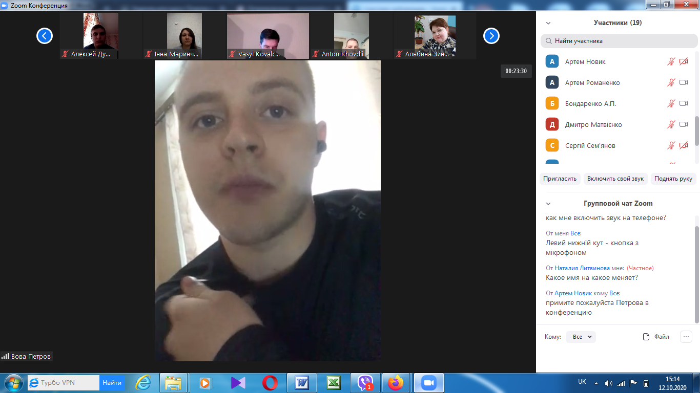 На факультеті технологічної і професійної освіти 12 та 15 жовтня відбулись відеоконференції (за допомогою сервіса Zoom) присвячені проміжному контролю виконання магістрантами другого курсу завдань педагогічної практики (Педагогічна практика у ЗВО на робочому місці викладача).