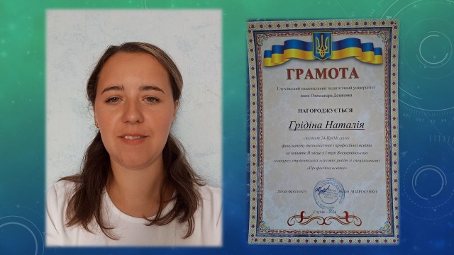 - Грідіна Наталія Олексіївна, здобувачка 2 курсу 24-Пр(М) групи. Науковий керівник – Опанасенко Віталій Петрович.