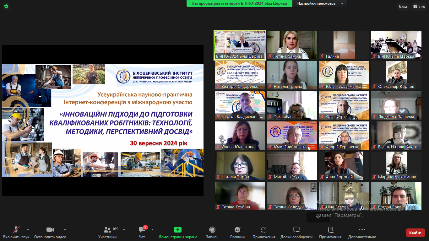 30 вересня 2024 року викладачі, докторанти, аспіранти, магістранти і студенти кафедри професійної освіти та технологій сільськогосподарського виробництва взяли участь у Всеукраїнській науково-практичній інтернет-конференції з міжнародною участю «Інноваційні підходи до підготовки кваліфікованих робітників: технології, методики, перспективний досвід», яка проходила на базі Білоцерківського інституту неперервної професійної освіти ДЗВО «Університет менеджменту освіти» НАПН України.