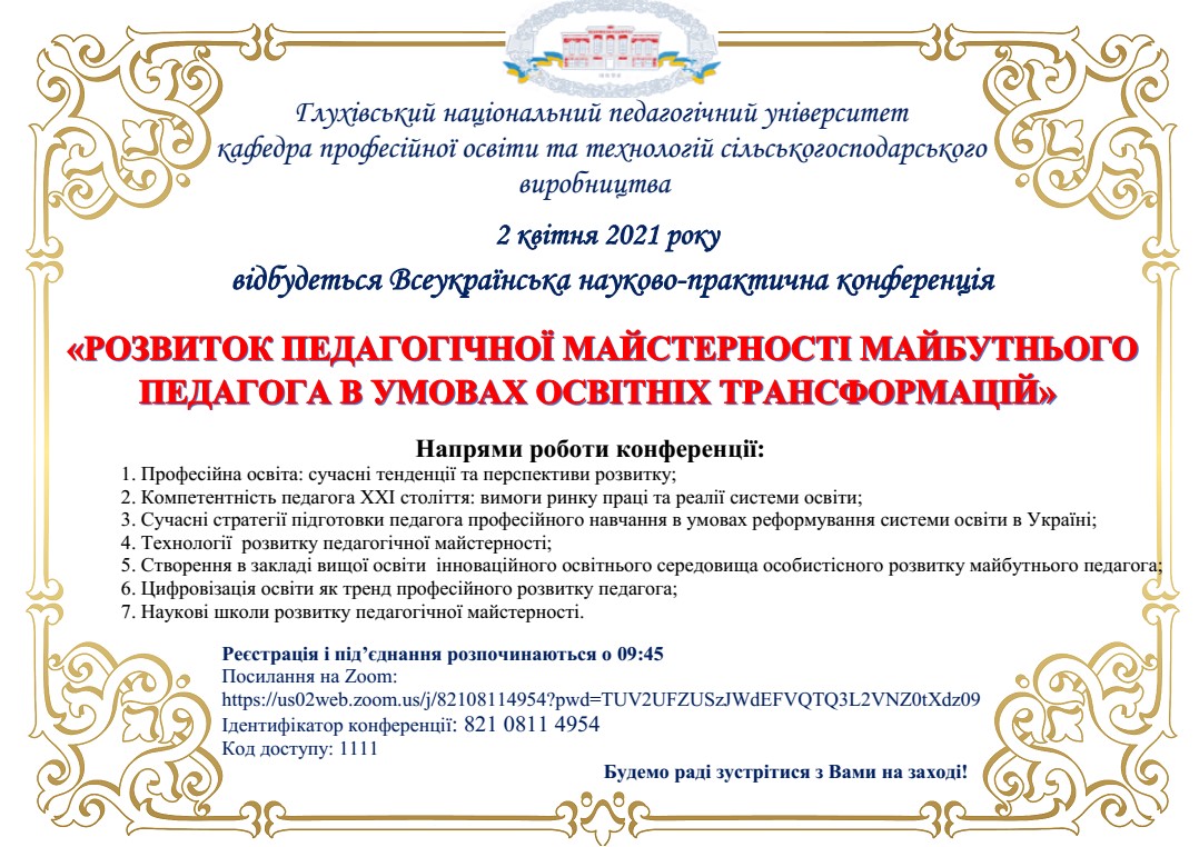 24 квітня на факультеті технологічної і професійної освіти Глухівського НПУ ім. О. Довженка відбулася гостьова лекція для здобувачів світи за ОНС «Доктор філософії» відомої вченої Лариси Лук’янової. Доктор педагогічних наук, професор, член-кореспондент НАПН України, Заслужений діяч науки і техніки України, директорка Інституту педагогічної освіти і освіти дорослих імені Івана Зязюна НАПН України прочитала лекцію на тему «Ідея освіти впродовж життя: від теорії до практики». Вчена звернула увагу слухачів на те, що ідея навчання впродовж життя входить до ключових компетентностей, визначених у законі «Про освіту», яким керується НУШ. Навчання потрібне не лише, щоб знати, але й щоб вміти знайти необхідні знання і знати, як вчитись.