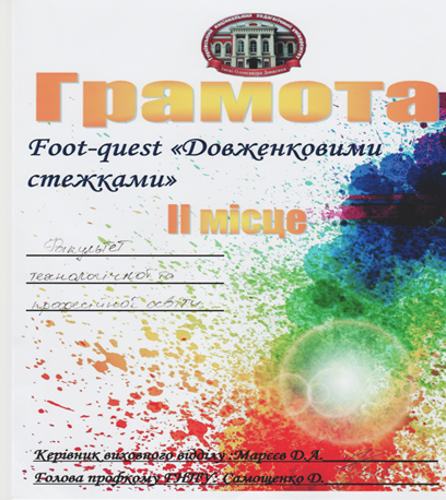Вітаємо команду нашого факультету із зайнятим другим місцем у Foot-quest «Довженковими стежками»
